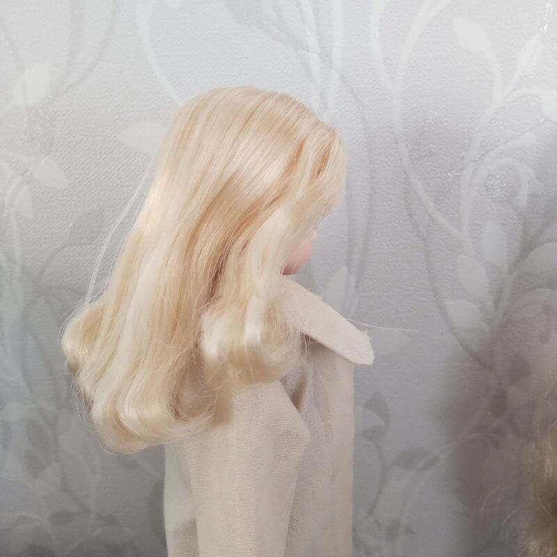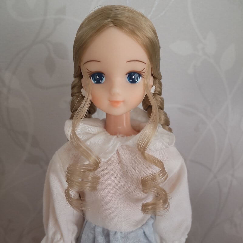 前髪ぱっつんアンティークブロンドちゃんの髪を裾縦ロール風にしてみようと思いました。