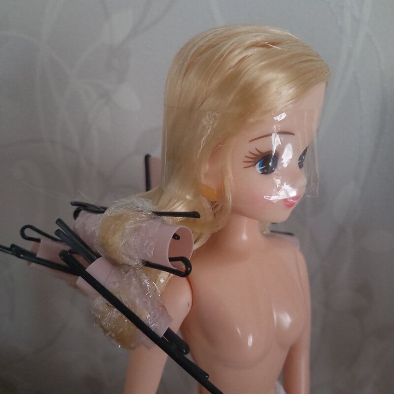 リカちゃんの髪はビニールで出来ていて、熱湯に数分浸かるとヘナヘナ柔らかくなります。